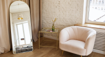 - Pin-Up с барным бархатным стулом у большой зеркальной распашной двери